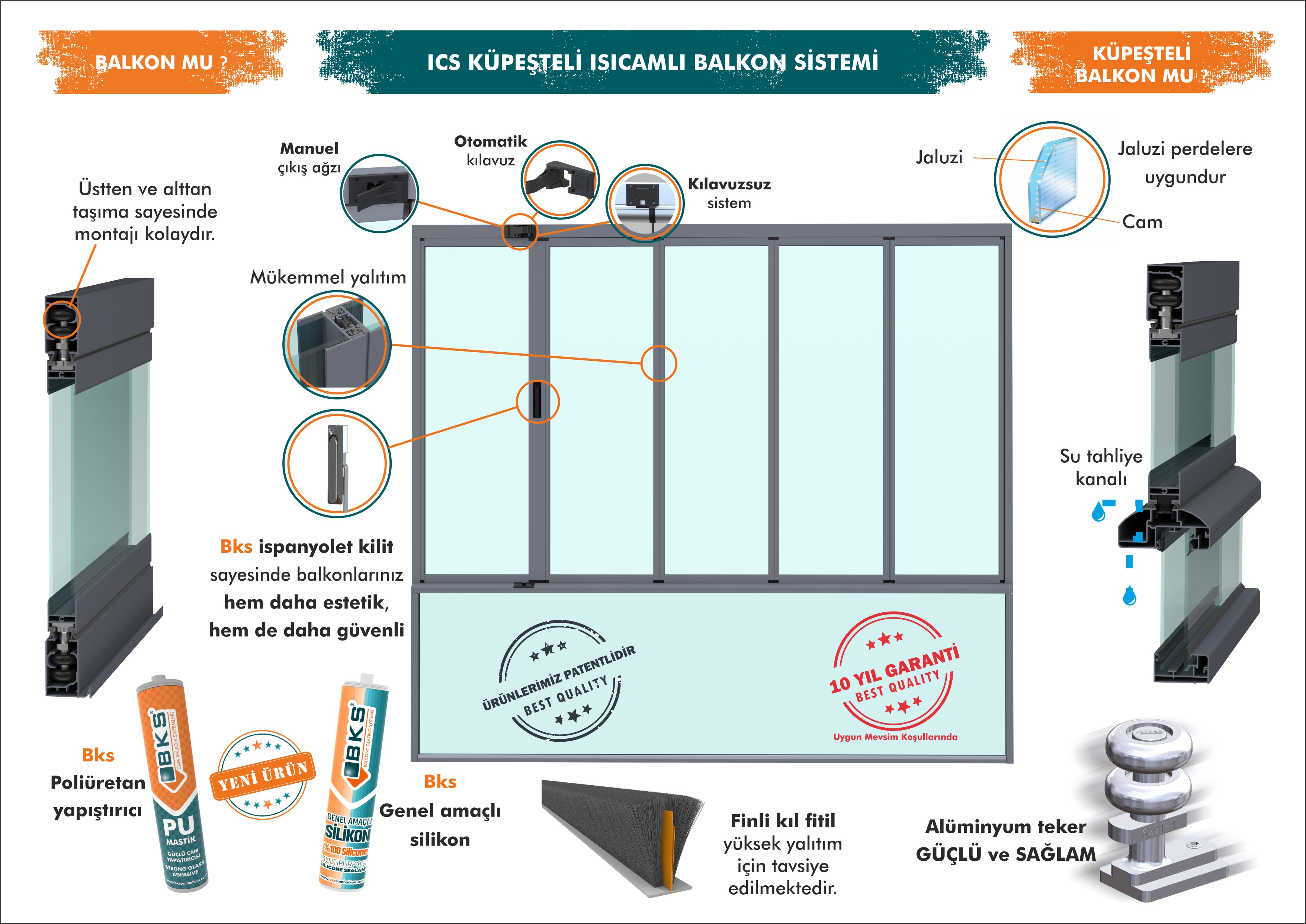 ICS Küpeşteli Isı Camlı Cambalkon Sistemlerde Kullanılan