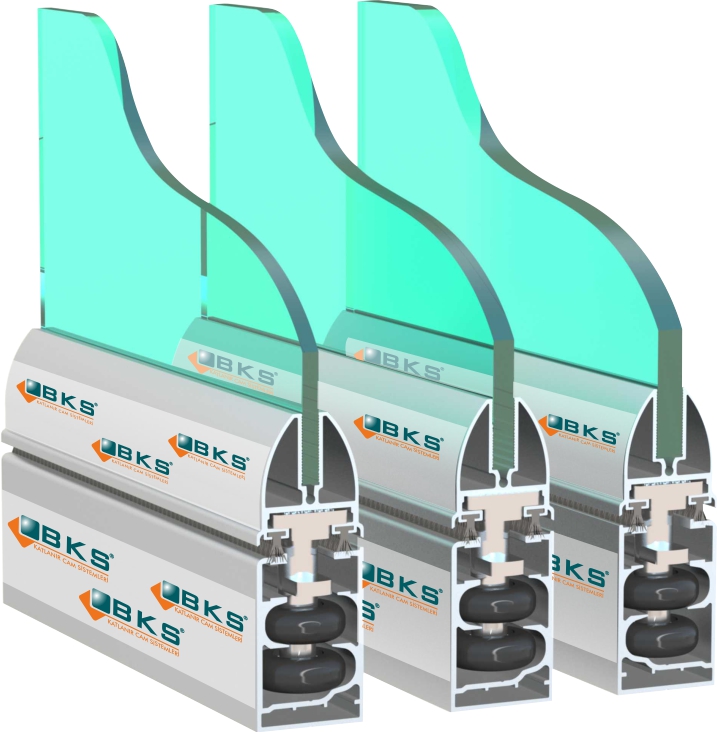 Küpeşteli tasarımı sayesinde paneller, alt profilsiz yapıda sabit bir ray veya kılavuz olmadan hareket eder. Özel mekanizması ile paneller sessiz ve akıcı şekilde açılıp kapanır, aynı zamanda uzun yıllar boyunca sorunsuz çalışacak şekilde tasarlanmıştır. Bu sayede mekanınız hem güvenli hem de estetik bir görünüme kavuşur.