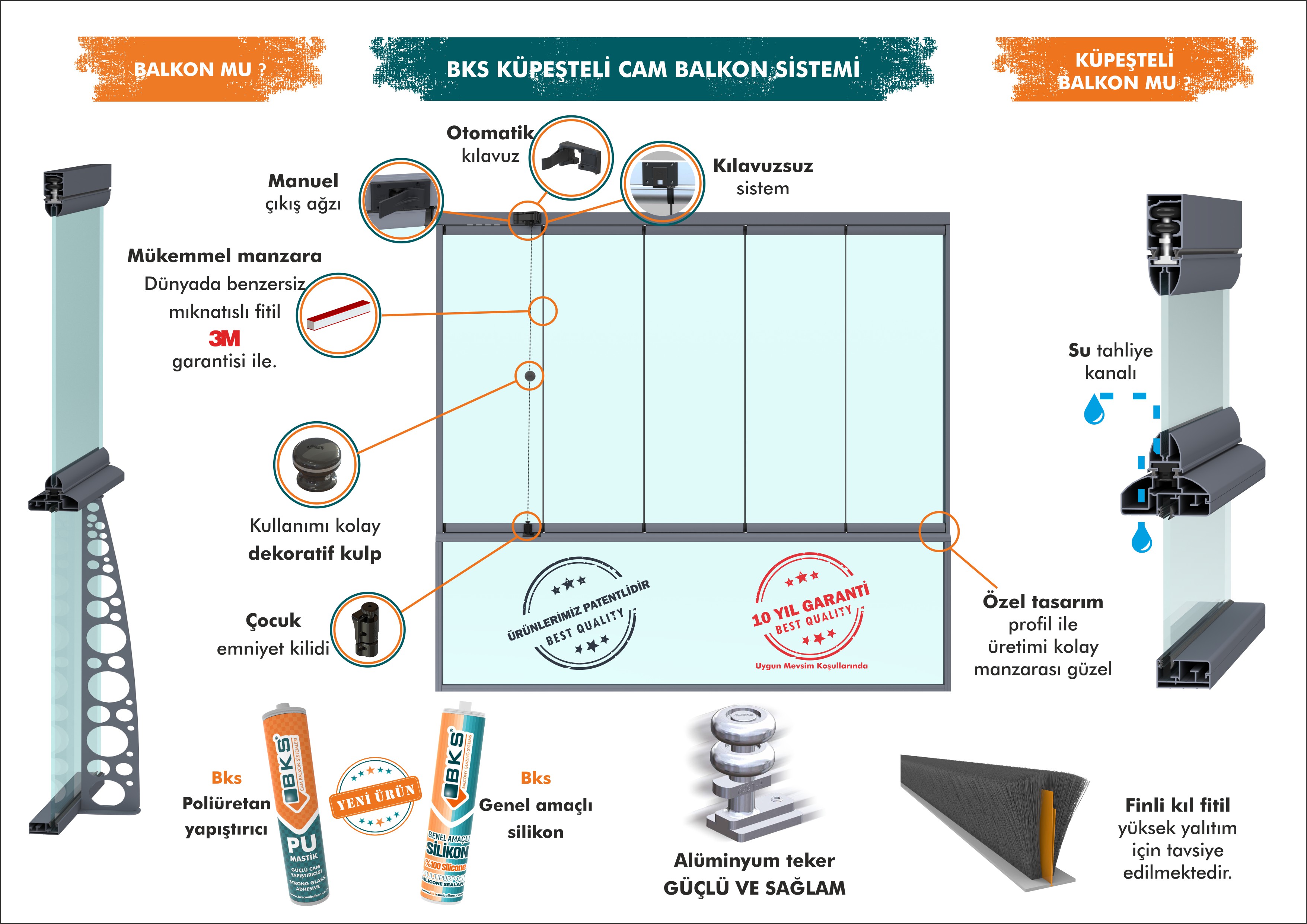 Kılavuzsuz Küpeşteli Cambalkon Sistemlerde Kullanılan Tüm Ürünler Hammadde Kalitesinin Özelliğinden Güneş, Gibi Diş Hava Koşullarından Etkilenmeden Uzun Yıllar Kullanabilirsiniz.