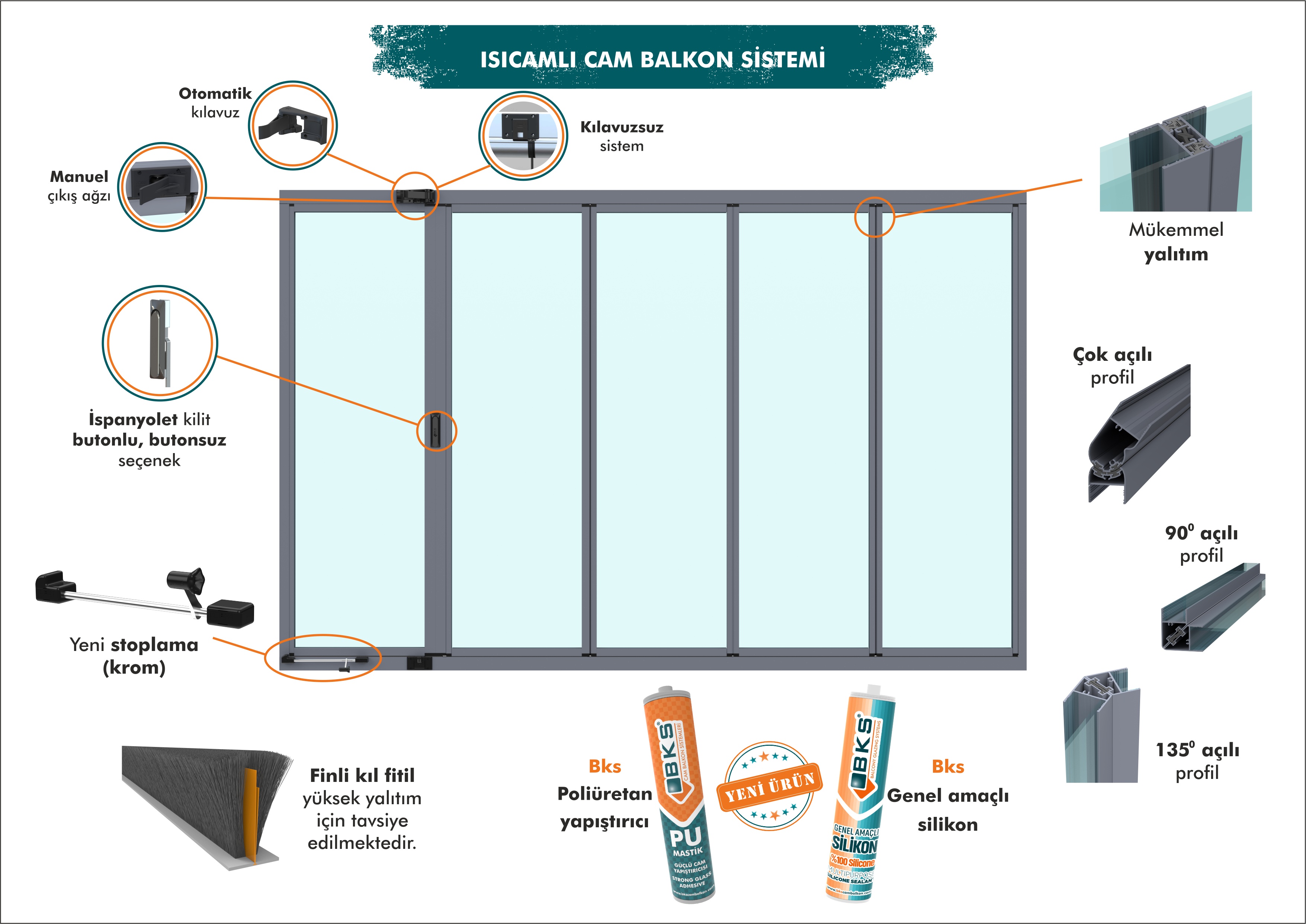 Isıcamlı cam balkon sistemi, çift camlı yapısı ile yüksek ısı yalıtımı sağlar. Farklı kalınlık ve renk seçeneklerine sahip temperli cam paneller, özel profil sistemi ile balkonunuza montaj edilir. Sistem, sessiz ve kolay açılıp kapanabilen mekanizması sayesinde hem ferah bir görünüm sunar hem de kullanıcıya konforlu kullanım deneyimi sağlar.